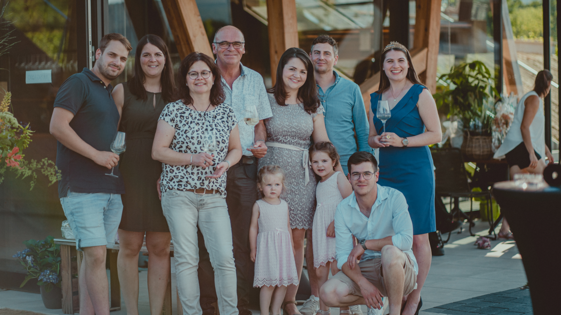 Wir sind eine Familie mit vielen Facetten – junger Pioniergeist und bewährte Tradition ergänzen sich durch generationsübergreifende Leidenschaft. Jeder in der Familie bringt seine eigenen Stärken ein – zwischen den Reben, im Weinkeller oder im Vertrieb. Dabei eint uns das Selbstverständnis für Zusammenhalt, Bodenständigkeit und unsere Hingabe zum Handwerk.